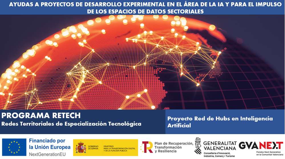 The Revital-IA project is funded by the European Union – NextGenerationEU, within the framework of the Recovery, Transformation and Resilience Plan (PRTR), through the RETECH initiative “Network of Artificial Intelligence Hubs.” This funding is channelled through the Call for Support for Artificial Intelligence and Data Space Projects of the Generalitat Valenciana (file INREIA/2024/60).